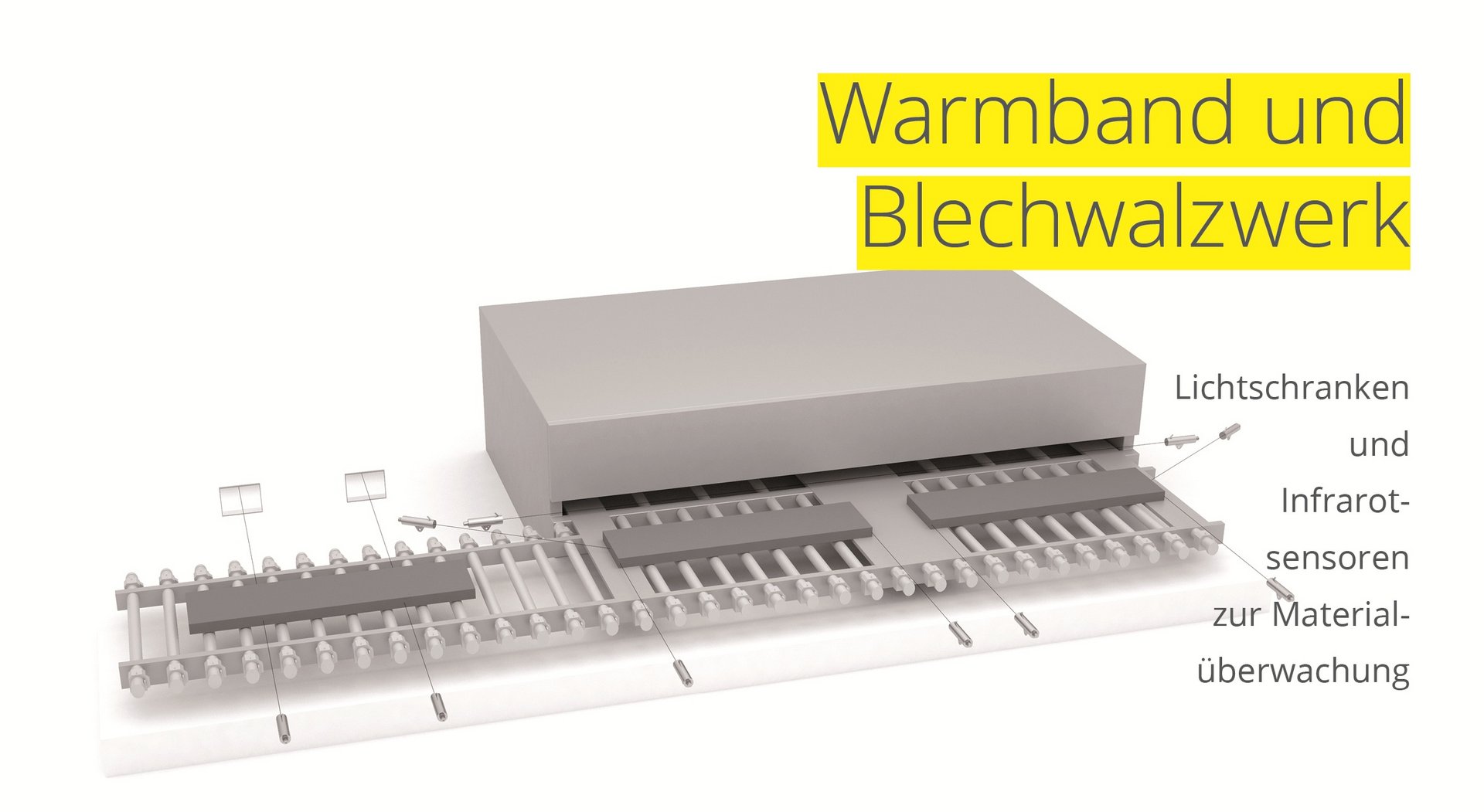 An HMD sensor detects hot metal contact-free by measuring its infrared radiation. In steel and rolling mills, HMD sensors are used to monitor the position, presence, and movement of glowing material.